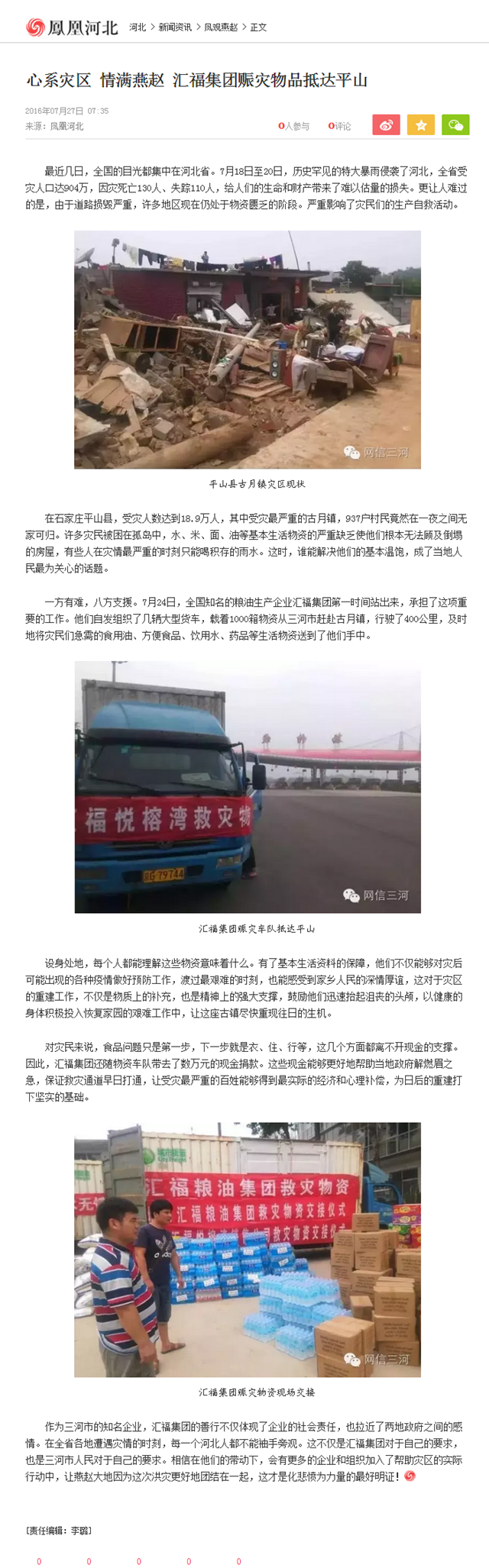 心系灾区 情满燕赵 汇福集团赈灾物品抵达平山