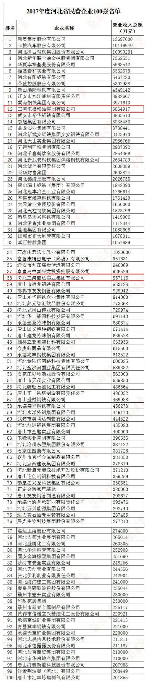 我市汇福粮油集团、燕达实业集团入围2017年度河北省民营企业100强