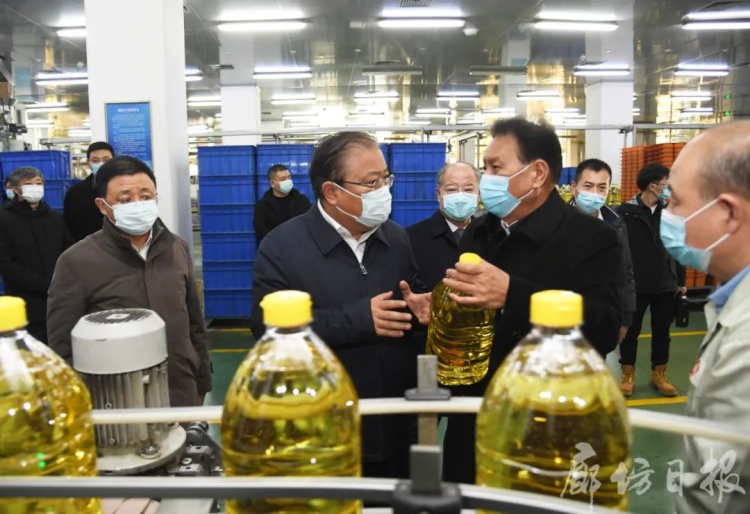 三河汇福粮油集团有限公司是以大豆加工为主的综合性企业集团,为国家农业产业化重点龙头企业。在这里,一桶桶金灿灿的食用油走下生产线,装车销往全国。杨晓和深入该企业展厅、生产车间以及检测中心实地调研,详细了解企业生产经营、科技创新等情况。他鼓励企业坚定发展信心,加大科技创新力度,全面提高抗风险能力,努力为地方经济社会发展多作贡献。地方和市直有关部门要继续大力实施民营经济“二次创业”行动,完善领导包联重点企业制度,强化精准帮扶和指导,为民营企业突破困局、发展壮大保驾护航。