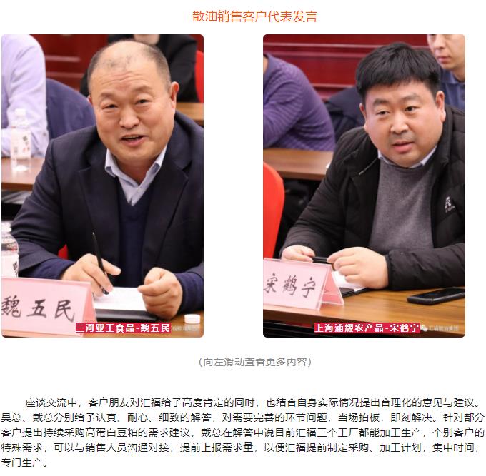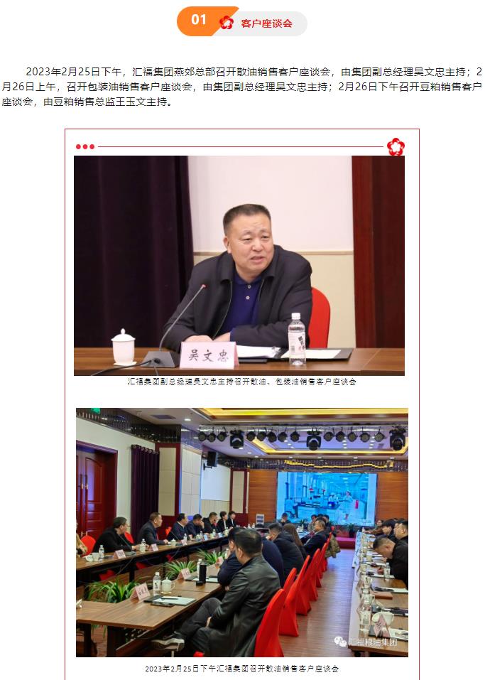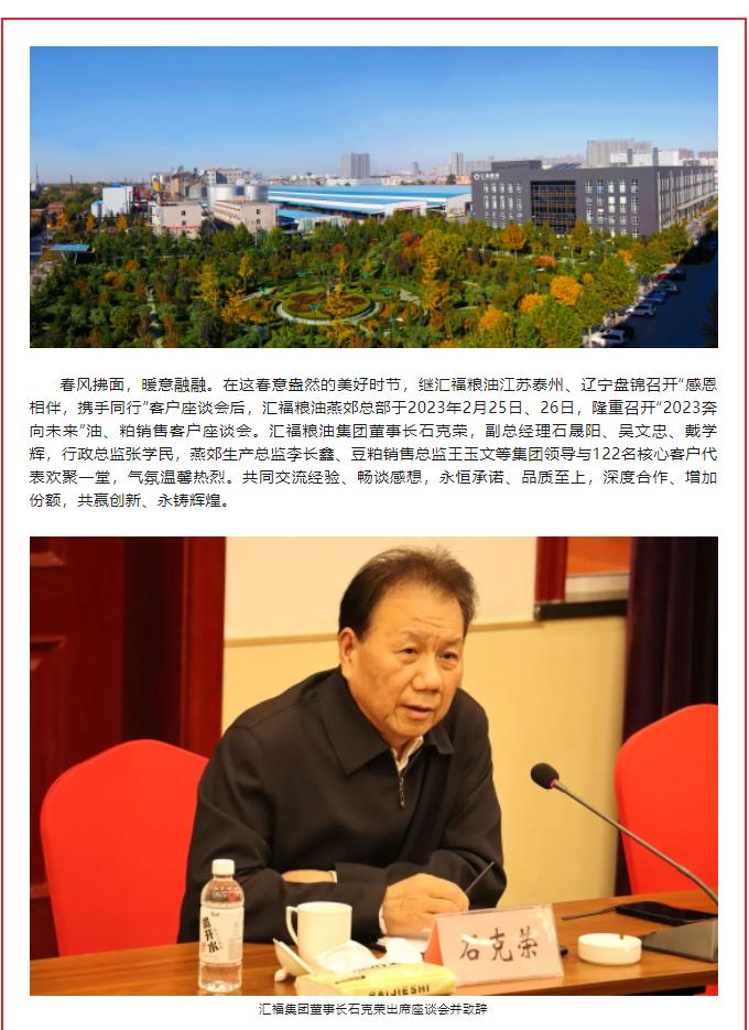 汇福粮油集团燕郊总部召开 “2023奔向未来”客户座谈会