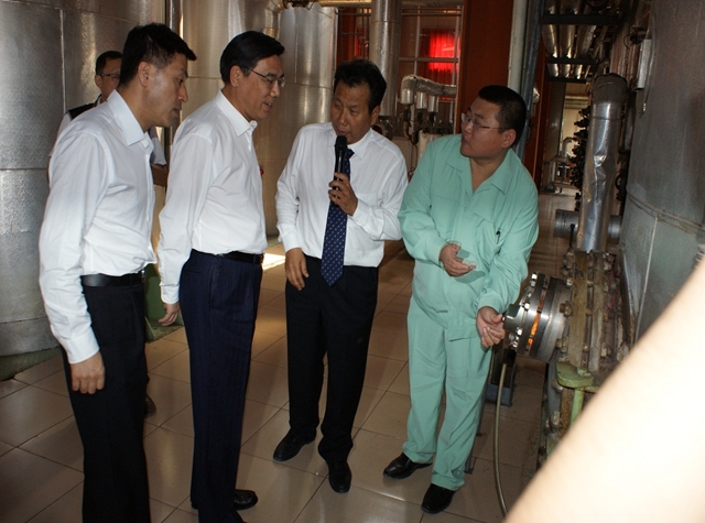 In the morning, Mr. governor Jiang Jianqing and the deputy governor Mr. Zhang Jiehui visited the subpackage center which can process 500 thousand tons of cooking oil per year, refining plant and modern grain logistics projects. During the visit, the president of Hopefull Mr. Shi Kerong made a specific introduction about our products, equipments, and production processes.