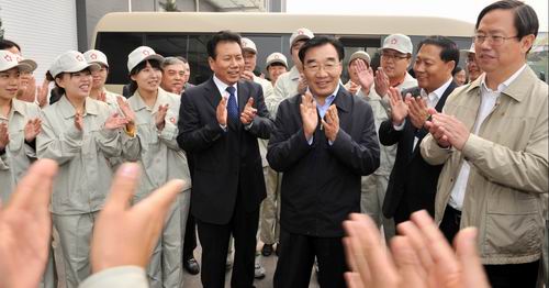 10月8日,国庆节上班第一天,省委书记张庆黎同志在省委常委、秘书长景春华、廊坊市委书记赵世洪、市长王爱民、三河市委书记张金波的陪同下,视察汇福粮油集团。张书记先后视察了精炼车间、现代粮食物流和灌装车间,并看望慰问了公司员工。