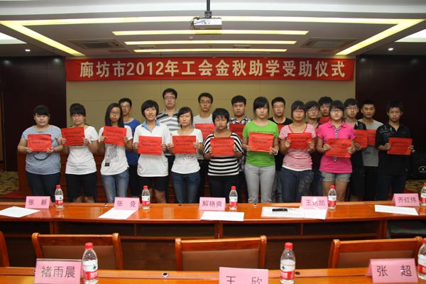 三河汇福粮油集团有限公司向廊坊市2012年工会“金秋助学”捐款20万元