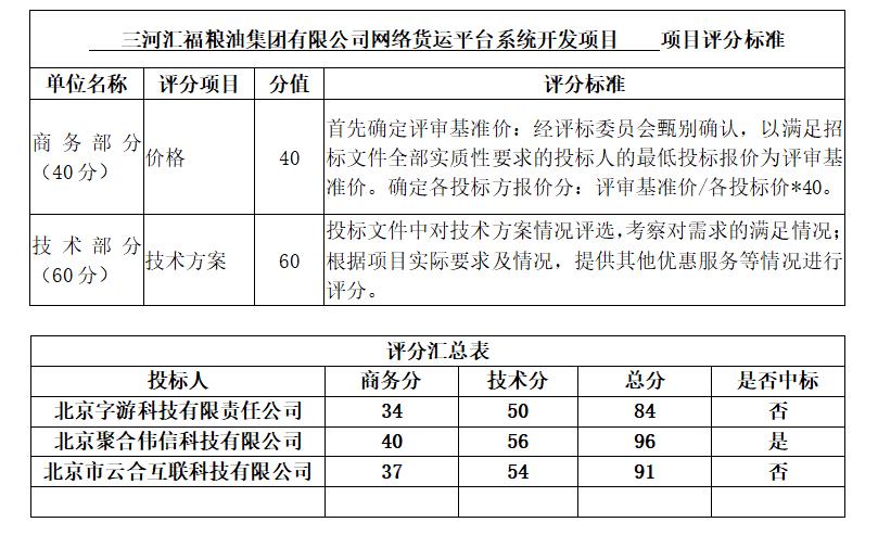 三河汇福粮油集团网络货运平台建设项目中标公告